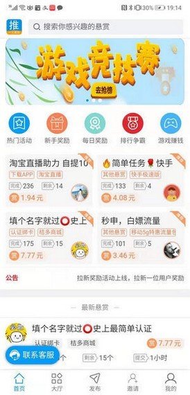 2、新上线免费推广赚钱软件的发布,类似平台很多相信大家都知道多少,主要靠发布推广任务和订单赚钱,游戏赚钱等等;