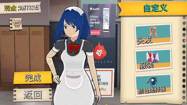 1、首先在手机上打开樱花高校模拟器,设置好自身的形象,拥有无限金币,随意更换服装;