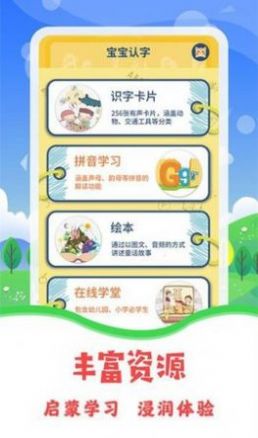 1、图片和语音识字,让宝宝可以得到更多的学习服务;