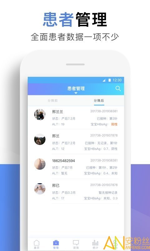 1、新增的患者数据统计功能,可以让您快速汇总绑定真实有效的患者信息;