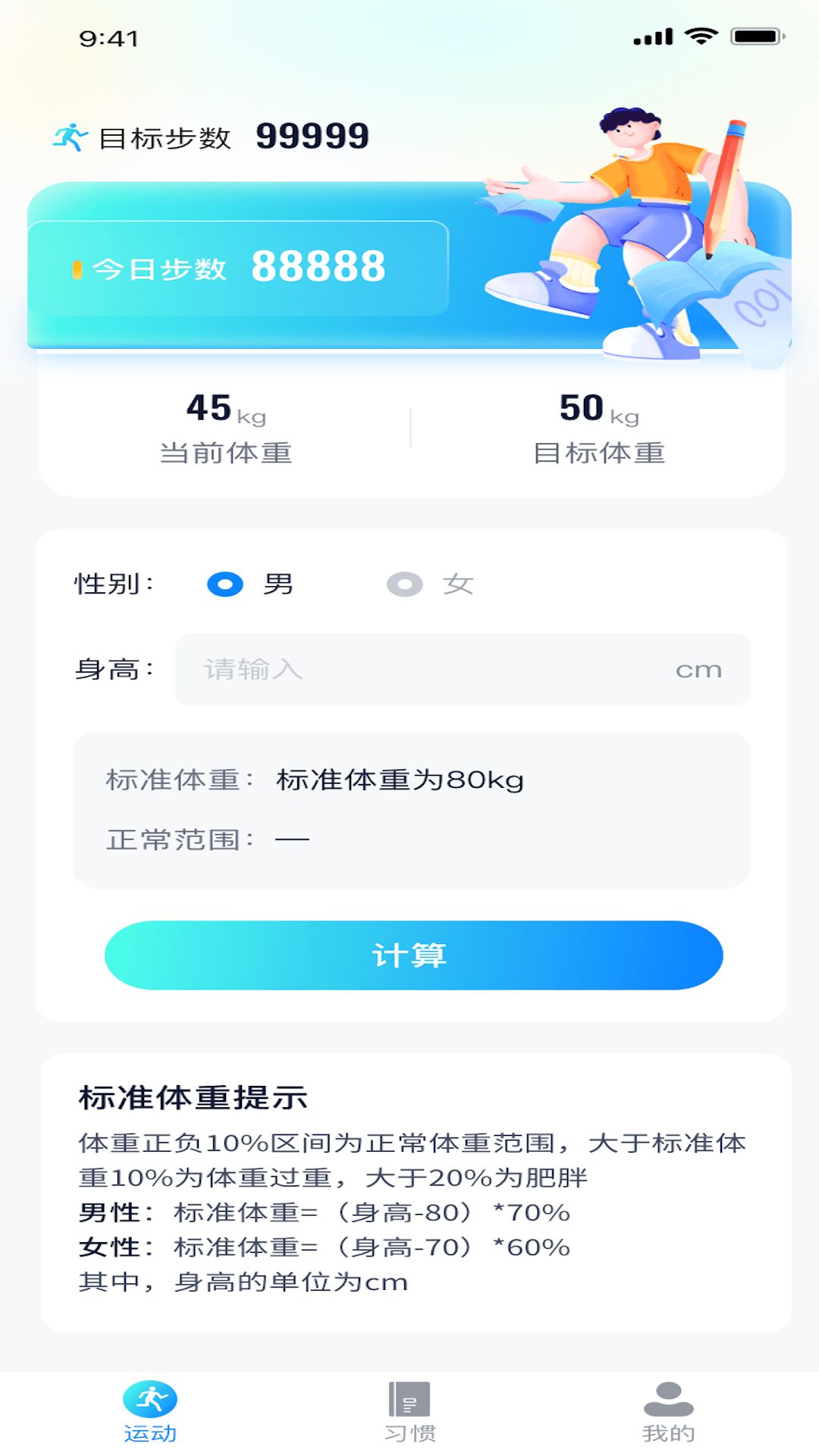 2、根据个人的运动情况,进行评估身体的健康状态