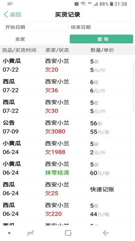 3、提供查询买货记录的方式更加的自由,能够快速的查询到对应日期的内容;