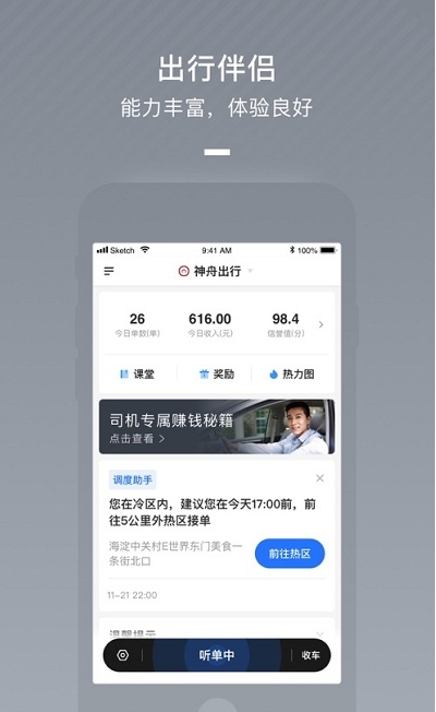 3、多种订单,场景服务:预约订单、接送机、接送站、景点专线、合乘拼车,根据不同服务等级和喜好,您可自行选择赚钱模式
