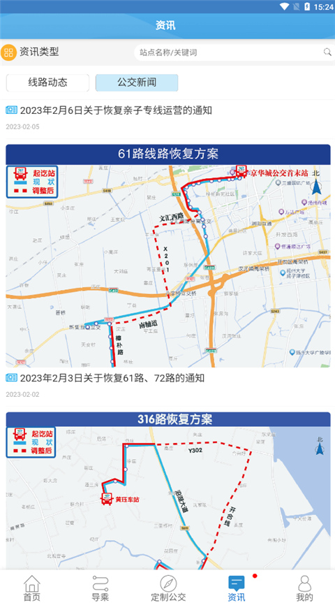 7、此外,在资讯板块中还可以查看公交车公司发出的最新公告。