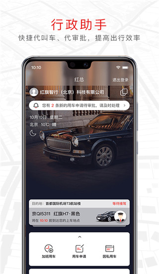 3、【行政助手】快捷代叫车.代审批,提高出行效率;