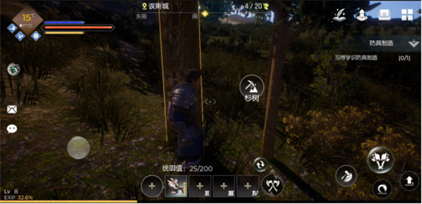 如果想要大量收集木头,需要装备斧子,然后对树木进行【砍伐】
