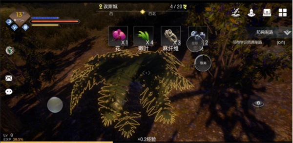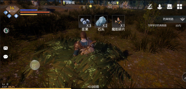 收割不同的灌木可以产出花、嫩叶、麻纤维、浆果、种子等材料,可以制作前期的基础装备、合成药草茶等。