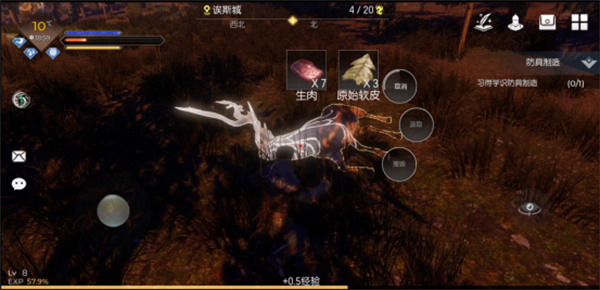 如果想要获取生肉、毛皮等材料,玩家需要装备【切肉刀】,在击杀生物后对尸体进行分割操作,不同类别的生物的具体产出也有所不同。