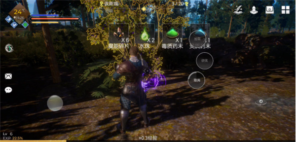 对树木进行汲取,可以产出魔能碎片、药末和水珠
