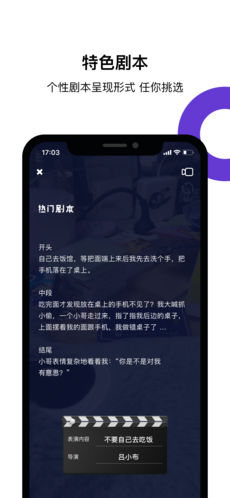 2、“戏多多”的剧本提供了开头和结尾,而中间缺失的部分则需要你的创意和演绎。真情实感或是无厘头,都由你来决定。你可以自编自导自演,博取其他用户对你的好评;也可以做一个路人甲,点评他人的表演,发掘明日之星!