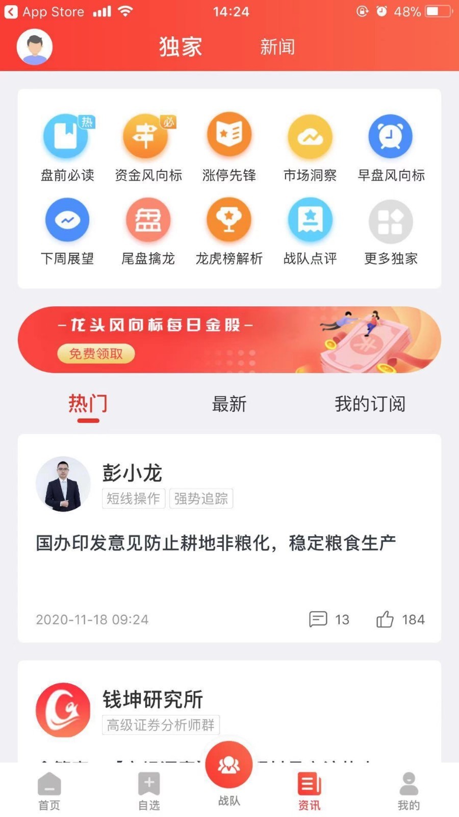 4、最专业的市场研判:精选资讯要闻,点评异动金股,展望市场方向;资深投资专家联手打造,高端策略解码股市,权威定位精准解析。