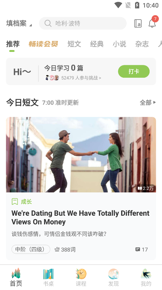 我们还会协助你制定短文计划,约束自己在一个月、两个月内一天不落地进行阅读。