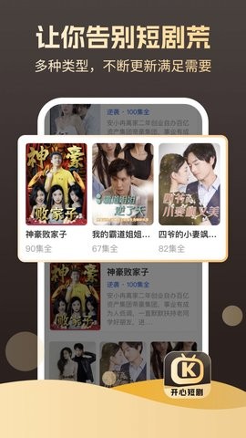 开心短剧是一款好用的影音播放软件,开心短剧软件采用了可以通过简单易用的界面浏览搜索和筛选自己感兴趣的短剧,包括喜剧爱情悬疑犯罪等多个分类,丰富的短剧类型都可以直接观看,软件内收录了搞笑感人热门经典等各类型的短剧,提供的是丰富的短剧资源,实现了视频缓存支持离线播放,都可以随时随地享受短剧带来的欢笑与感动,因此它所提供的短剧综艺影视资源都非常丰富。欢迎各位用户下载体验!