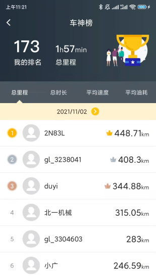 4、【行车记录】可查看每一段或每一天的行车记录,包括行车路线、总油耗、平均速度、总里程等;